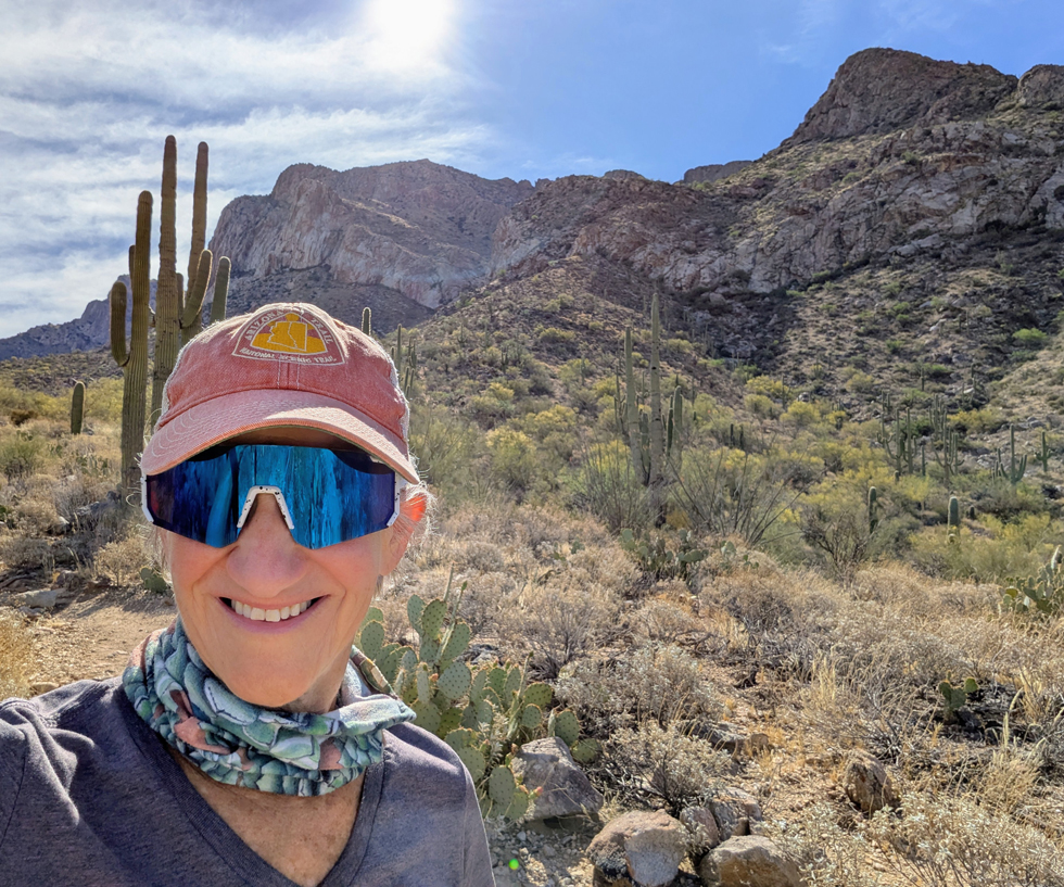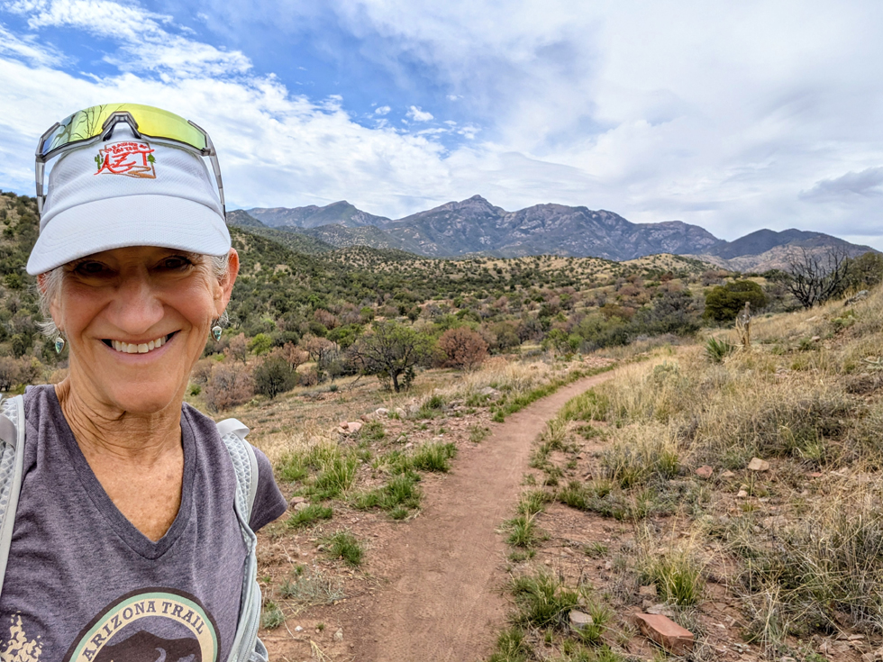 On Saturday, April 4, Alastair had an orienteering event at the AZT trailhead that is the beginning of my section of the Arizona Trail (I’ve been the steward for many years). His event took most of the day, so I went off to hike, stopping often to stretch, take photos, and do a bit of trail maintenance (cutting back catclaw – a desert shrub known for its sharp, hook-like thorns). I did 5 miles with roughly 400 feet of elevation gain. I actually found doing a bit of climbing was more comfortable than my previous walks on flat, dirt path – which makes sense since it requires using a mix of different muscles. The next day I had some aches, but I did my PT exercises, iced, and stretched. By midday I was feeling pretty good!